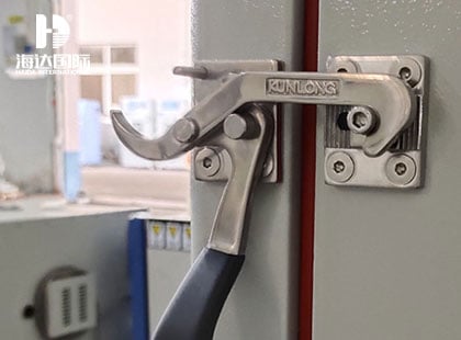 10、測試部分:不銹鋼材質,箱門為兩層5mm厚的鋼化玻璃,可觀察被測試試樣的狀態(tài),后側設計有排風扇,并預留外接排風接口。